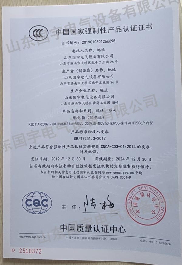 山東國宇電氣設備有限公司是專業(yè)的濟南配電箱定制生產加工廠家,專業(yè)生產各種配電箱、配電柜、動力箱、戶外箱、控制箱等成套電氣設備,公司生產的生產高低壓成套、不銹鋼配電箱和鐵制配電箱、PZ30系列、PZ40系列、電表箱、動力箱、動力柜、多媒體箱、基業(yè)箱、電視電話箱、光纖入戶箱等配電產品,均已通過了國家強制性CCC認證。國宇電氣配電箱柜系列產品遍布國內外,安全、可靠地運行于電站、電廠、軌道交通、基礎設施、商業(yè)、住宅、醫(yī)院、學校、機場、港口和工礦企業(yè),受到眾多新老客戶的一致好評。